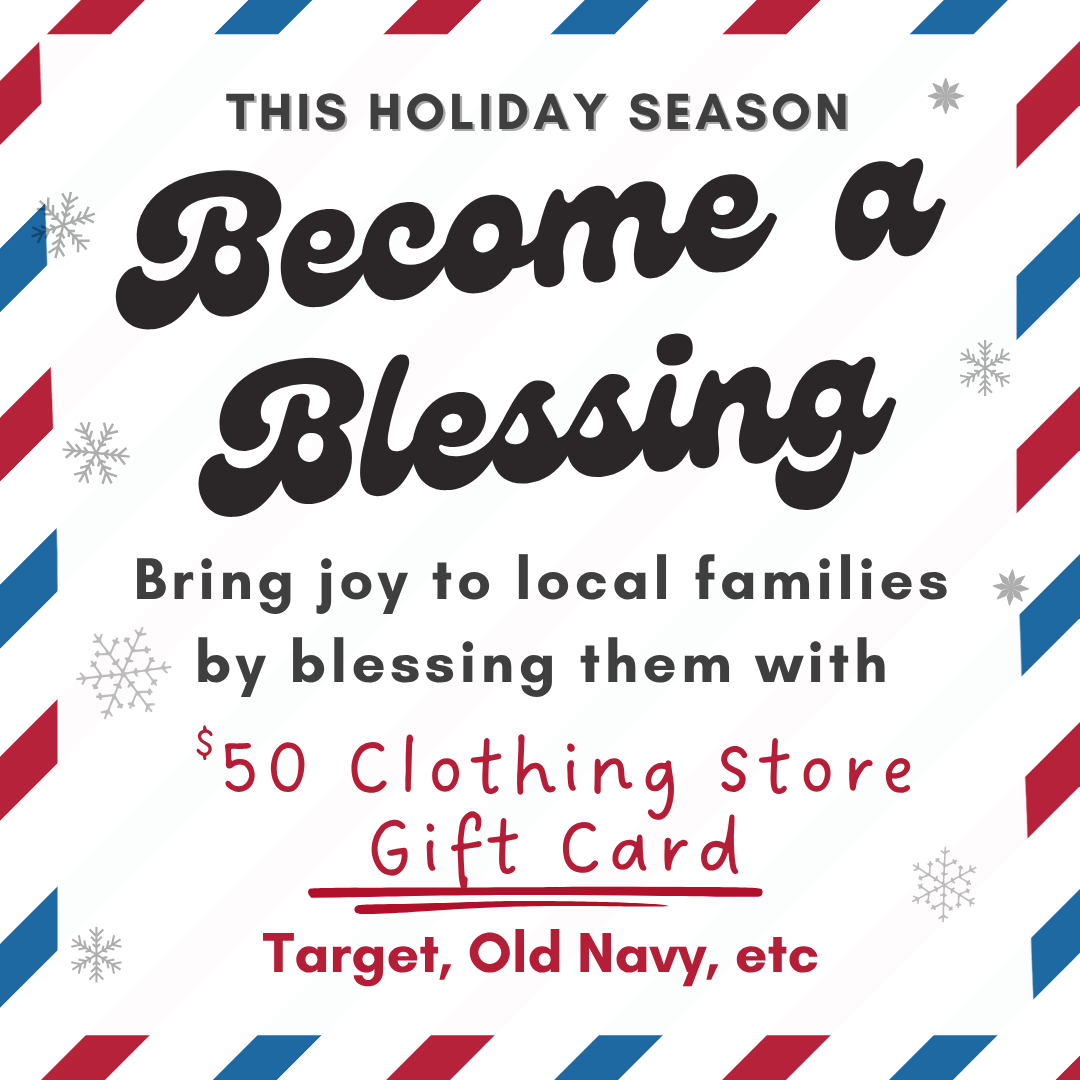 Help the Chaplaincy bring joy to families in our community, by paying for a $50 Clothing Store Gift Card before December 8. Chaplaincy Staff will purchase the gift card for you!